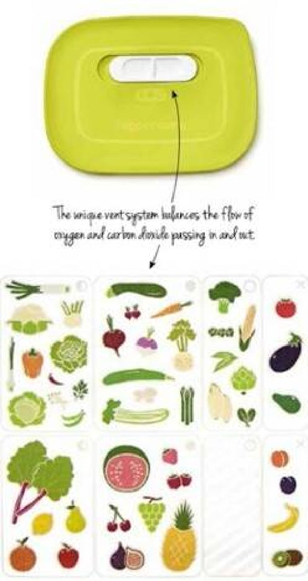 - Superpraktisch: slimme pictogrammen illustreren wat er in de doos kan. Het ingenieuze schuifsysteem regelt de luchttoevoer voor de inhoud.