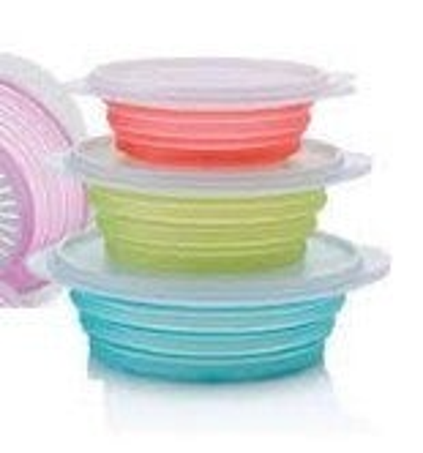 Deze innovatieve hermetische bakjes kunnen uitgeklapt worden tot kommen wanneer ze nodig zijn en ingeklapt wanneer ze niet gebruikt worden.