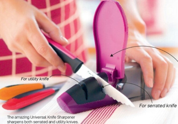 Slijpmuis: Geschikt voor gekartelde en gladde messen van Tupperware messen collectie. Ideaal voor het veilig en efficiënt slijpen van al jouw gladde én gekartelde messenSterke punten